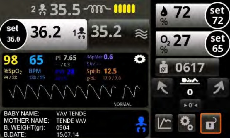 Инкубаторы и открытое реанимационное место производства компании TENDE представляют собой устройства с широким набором клинико - диагностических инструментов, позволяющие обеспечить эффективную интенсивную терапию с тщательным контролем параметров периферической гемодинамики ребенка. Masimo Rainbow SET - это непрерывный мониторинг показателей общего гемоглобина SpHb, метгемоглобина SpMet, карбоксигемоглобина SpCO, вариабельность плетизмографии PVI и индекса резерва кислорода ORI. Постоянная, а не эпизодическая, оценка данных параметров позволяет диагностировать развитие патологических процессов в организме ребенка на самых ранних этапах, что в свою очередь влияет на эффективность и результат тактики выбранной терапии.